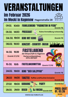 Das Theater Kulturkate e.V. möchte aus dem Mecki kein Theater machen, sondern es als soziokulturelles Zentrum der Stadt Hagenow erhalten. Es wären eine Reihe von Veranstaltungen, die schon geplant sind, wie die Fastelabende oder der Weihnachtsrock, fortzuführen, aber auch neue Veranstaltungsreihen wären denkbar, um den Mecki wieder mit Leben zu erfüllen.